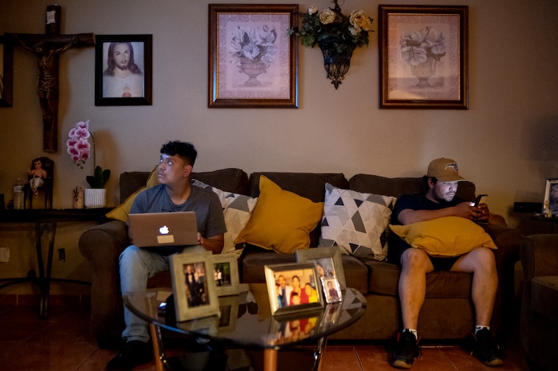 After a long day, the Hernandez brothers sometimes get to hang out on the couch together. Luis will usually do homework on his laptop. Jimy might be watching the news or scrolling on his phone.