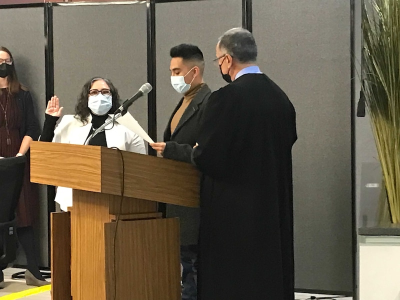 After being sworn in, Gaytán said the new board, which includes members Scott Baldermann and Brad Laurvick who were elected in 2019, is united in their call for change.