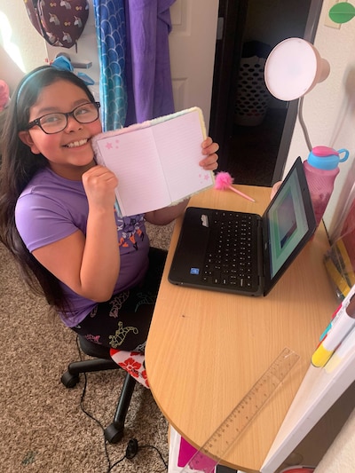 Alahnna is a loving 8-year-old whose mother, Angelique, describes her as “a real joy.” She’s also a motivated student. Learning from home, Alahnna said she misses playing with her friends at recess but she’s grateful she still gets to draw in virtual art class. She recently drew a story about a caramel ice cream cone named Carmy whose friends didn’t like him at first because he was different. But Carmy told them it’s important to accept everyone the way they are.