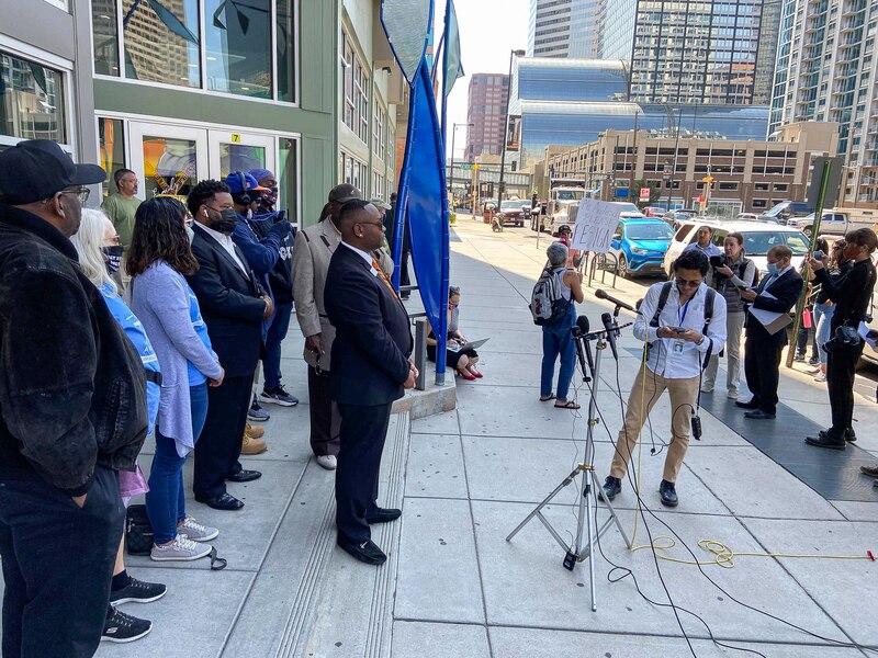 At a press conference before the meeting, Bishop Jerry Demmer of the Greater Metro Denver Ministerial Alliance spoke in support of Anderson.