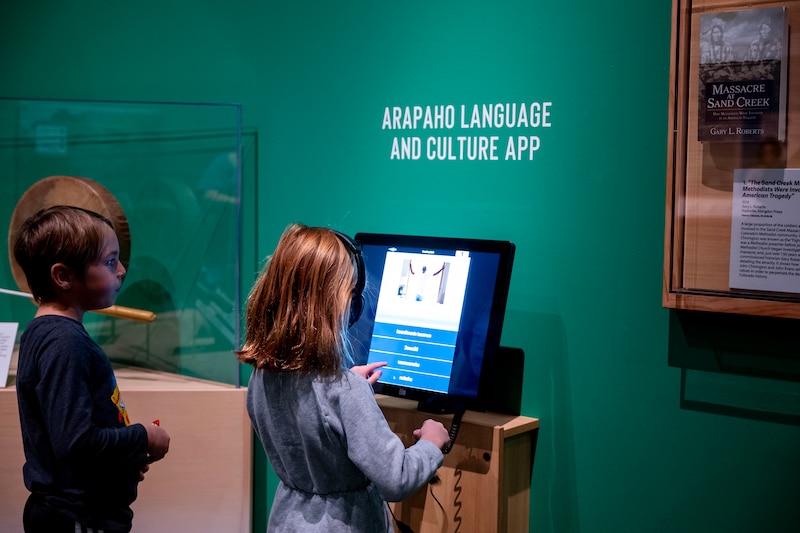 The exhibit starts years before the massacre, grounding visitors in the tribes’ culture and way of life. Besides maps, timelines, and larger-than-life photos, the exhibit features oral histories from tribe members telling the stories of Sand Creek that have been passed down over generations. The exhibit incorporates Cheyenne and Arapaho language throughout.