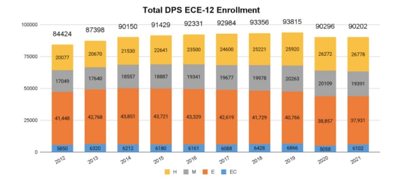 Declining enrollment is arguably the most pressing issue facing Denver Public Schools, and the district’s latest annual report takes a deep dive into current numbers and future predictions.