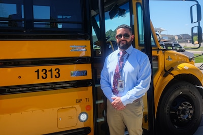 Aurora Public Schools Fleet Manager Omar Espinal plans to track the performance of the districts’ seven electric buses to measure cost savings and other benefits. (Erica Meltzer / Chalkbeat)