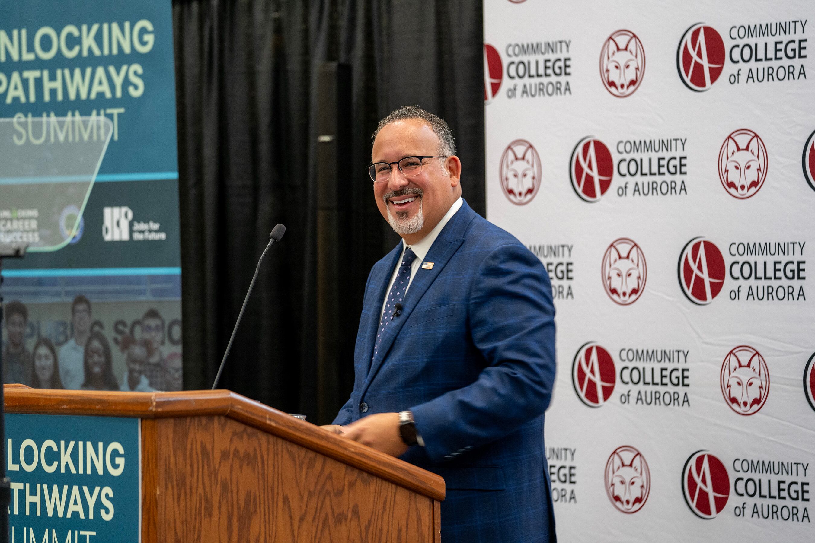 Every high school graduate across the country should get the training they need to land a job that leads to more opportunity, U.S. Education Secretary Miguel Cardona said Thursday in a speech at the Community College of Aurora.