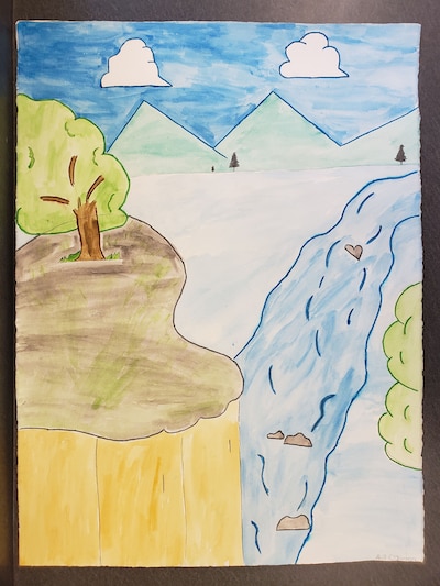 Para su proyecto, Abril, la sobrina de Hernandez, dibujó un río porque sentirse como en casa le hizo pensar sobre entornos tranquilos.
