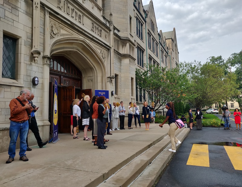 On the first day at the School at Marygrove — a new, experimental high school focused on engineering and social justice — school staff cheered and shook pom-poms as students filed into a nearly century old stone building, glancing back tentatively at the row of TV cameras pointed at them.