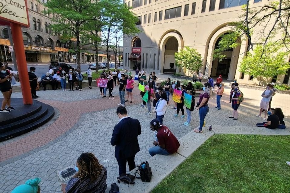 Led by 482Forward, an education advocacy group, the protesters called for the district to shift funding from the school police force to guidance counselors, restorative justice programs, and a committee that would create a districtwide safety plan.