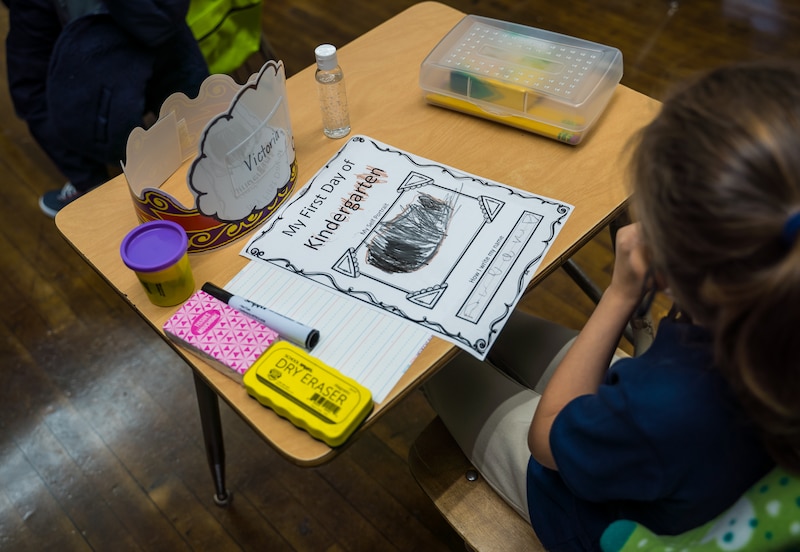 Gray clouds and a steady rain greeted students and parents arriving at Harms. So did computerized temperature kiosks, hand sanitizer, and lessons on social distancing. There were a number of safety precautions in place. At Thirkell Elementary-Middle School, for instance, only two students are allowed at each lunch table, and they must sit side by side so they’re not facing each other.