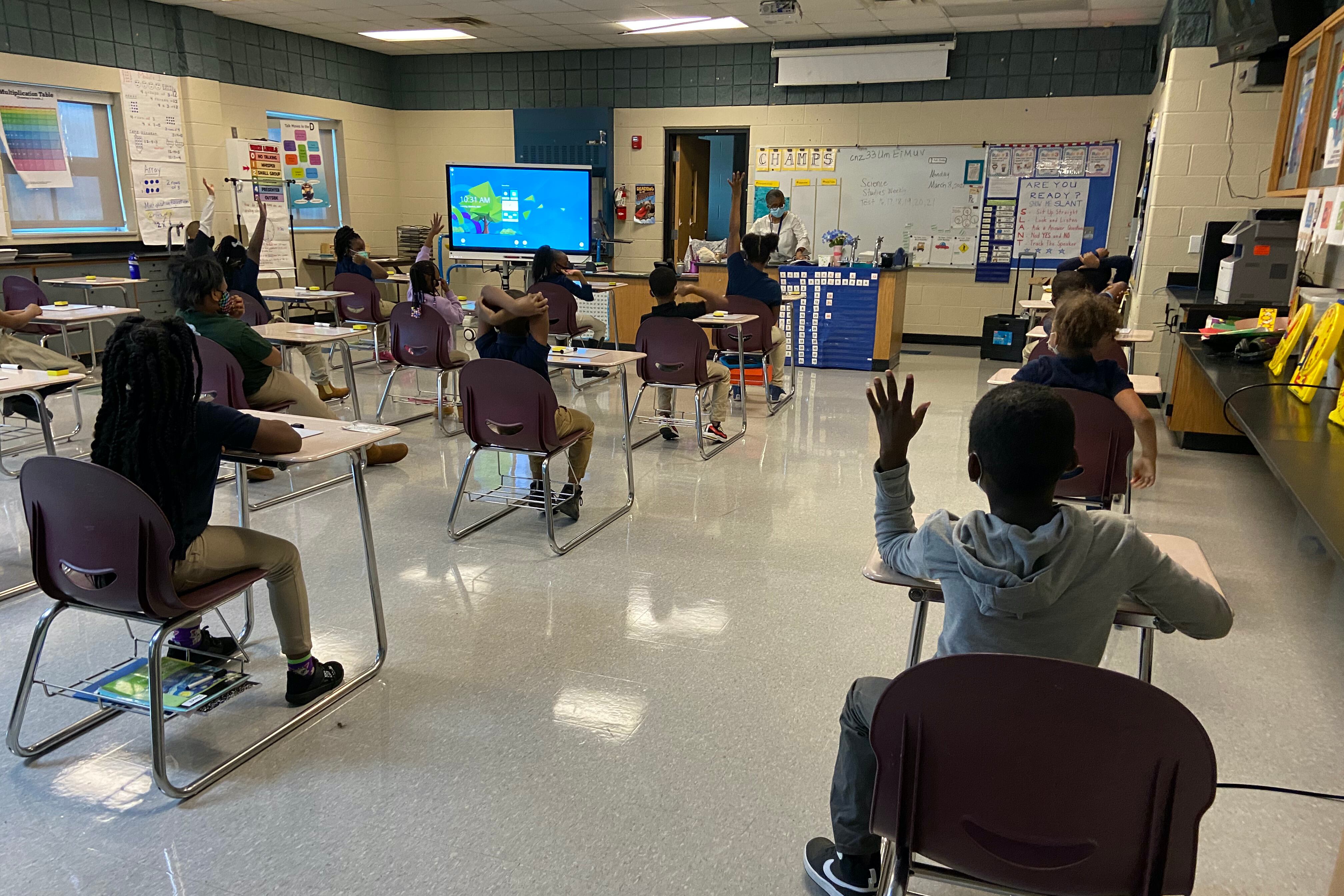 At Ronald Brown Academy, Michael Foster, a fourth grade math teacher, was teaching students virtually and in person at the same time.