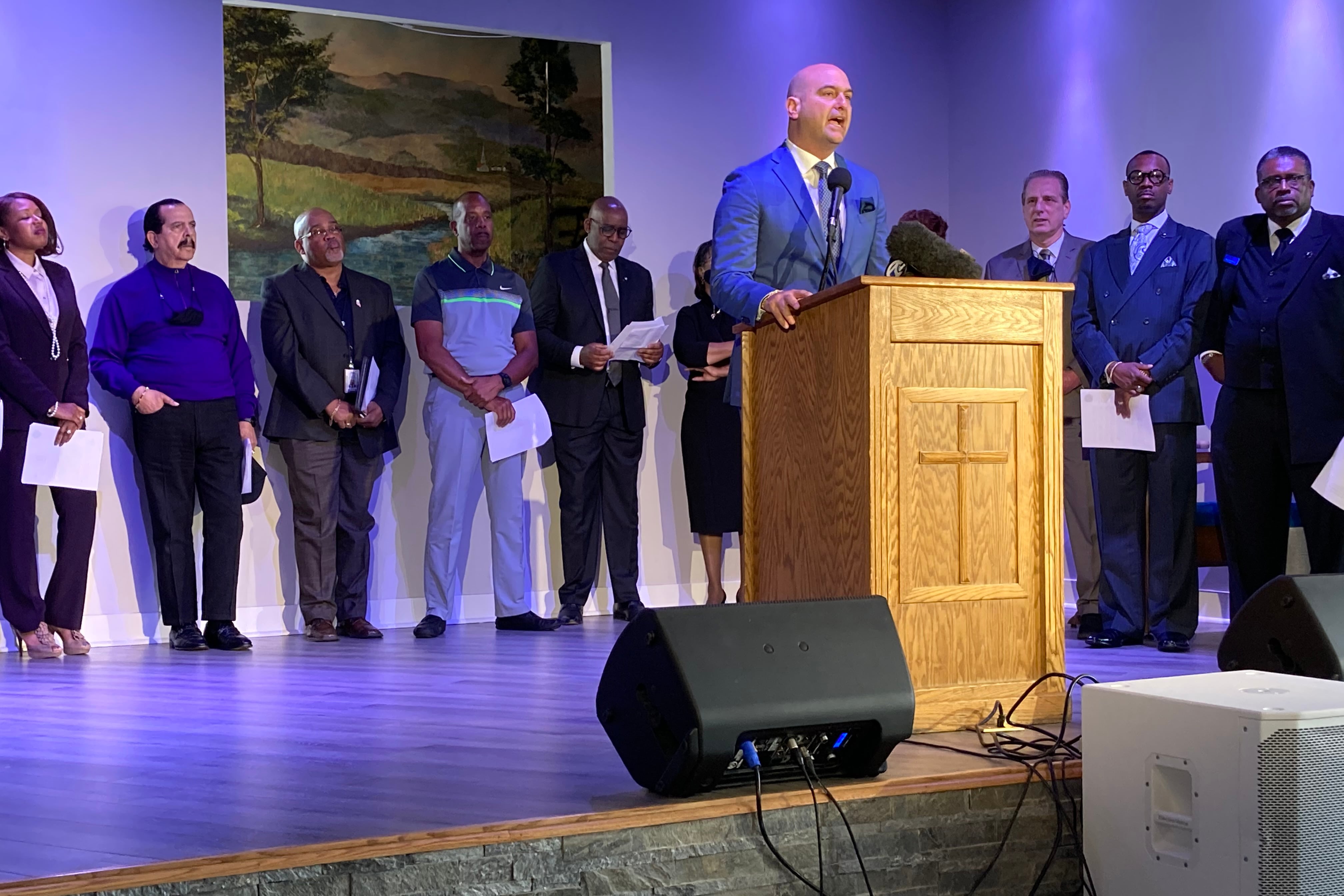 “Take the shot,” said Rev. Steve Bland, president of the Council of Baptist Pastors of Detroit & Vicinity, as he led a group on a stage at Liberty Temple Baptist Church in a chant.