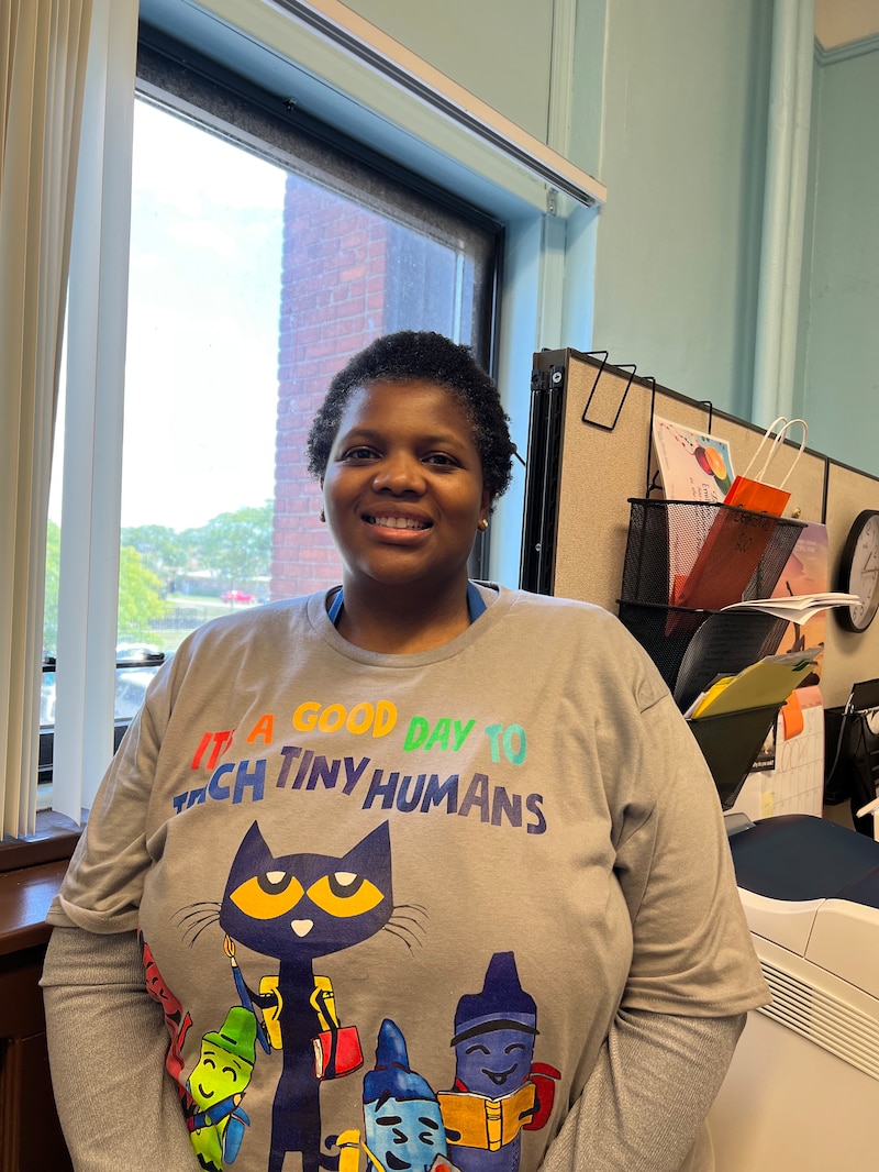 After lunch, one of the 4-year-olds returning to Gipson’s classroom pokes her head onto the screen, wanting a hug and a look at whom Gipson is talking to. Speaking in Spanish, Gipson explains that she needs a few more minutes to wrap up the interview.
