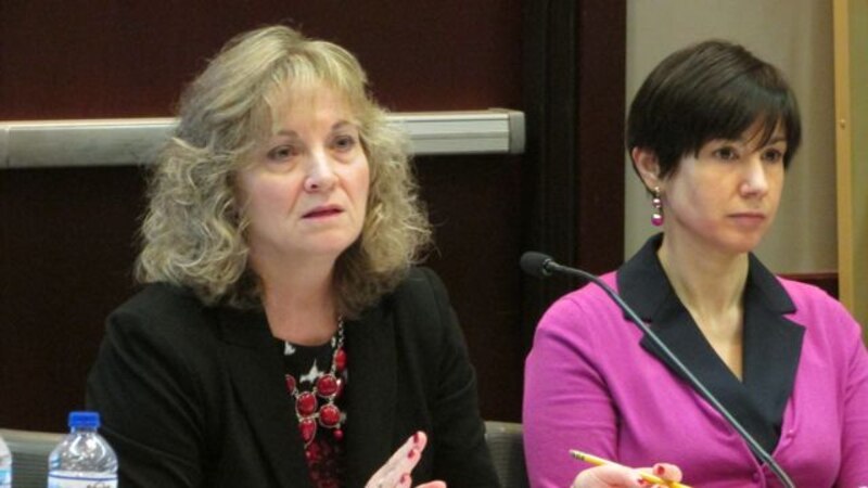 State Superintendent Glenda Ritz, left, at Friday’s Indiana State Board of Education meeting.
