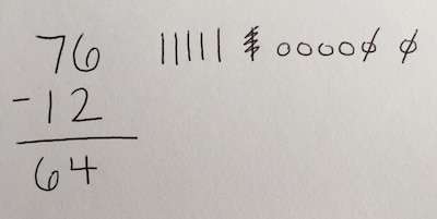 A correct “picture” next to the equation looked something like this, with tally marks visually representing numbers in the “tens” place and circles representing those in the “ones” place.