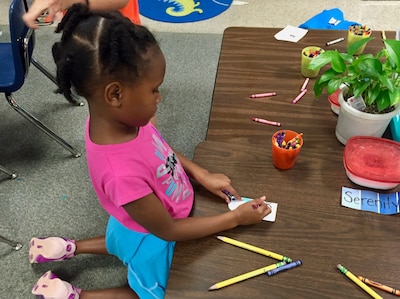 The goal is to assemble bracelets keeping with the theme of the day’s lesson: Learning about the lifecyle of Monarch butterflies. Eventually, the bracelets will serve as physical reminders to the kindergarteners at home.
