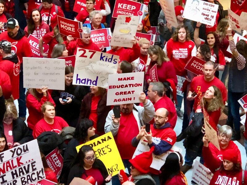 Indiana Democrats have pushed for more dramatic changes, such as giving every teacher in the state a 5 percent raise. Several Democrats were present at the rally, including Rep. Sheila Klinker, from Lafayette, Rep. Melanie Wright, from Yorktown, and Rep. Tonya Pfaff, a new lawmaker from Terre Haute. All three are former or current teachers.