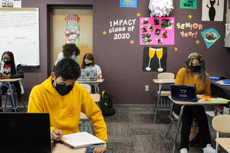 Aleman-Moreno feels anxious over the risk of falling sick, but is relieved to leave behind hybrid learning, where he sat in classrooms part of the week and learned at home the rest. The arrangement and pace of it made his AP classes challenging. The teachers, he said, “can’t really stop to process things, so they have to move on.” And he found himself prioritizing a job over school and fell behind.