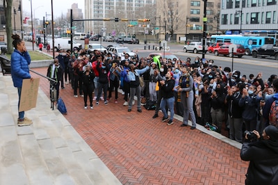 Around 9 a.m., students began streaming out of the Lincoln Park High School campus of North Star Academy, which is New Jersey’s largest charter school operator with more than 6,000 students in Newark and Camden. After marching from the Central Ward campus to nearby City Hall, student organizers and a former teacher gave speeches about a culture of anti-Blackness they said pervades the school, while scores of students cheered and waved signs.