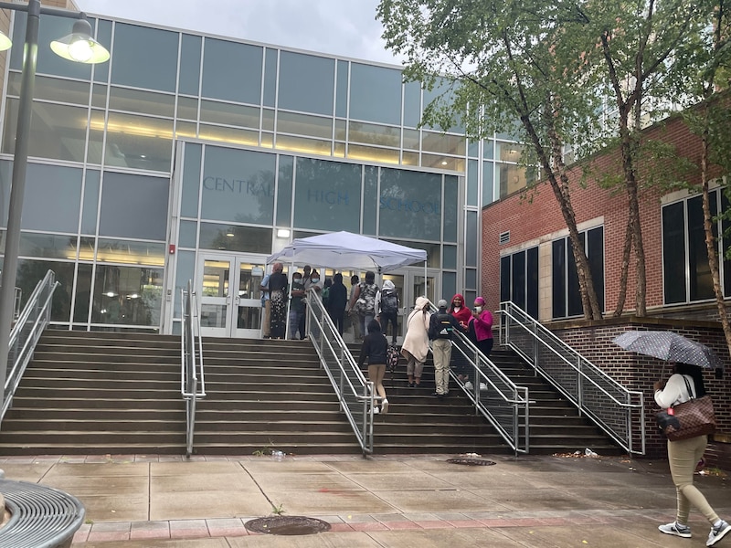 At Central, dozens of teens rushed to the 18th Avenue entrance Tuesday morning as the rain trickled down their backpacks. Some hugged their parents goodbye while others just waved as they ran up the stairs. At the 17th Avenue entrance of the school, students waited in a line outside the school’s doors.
