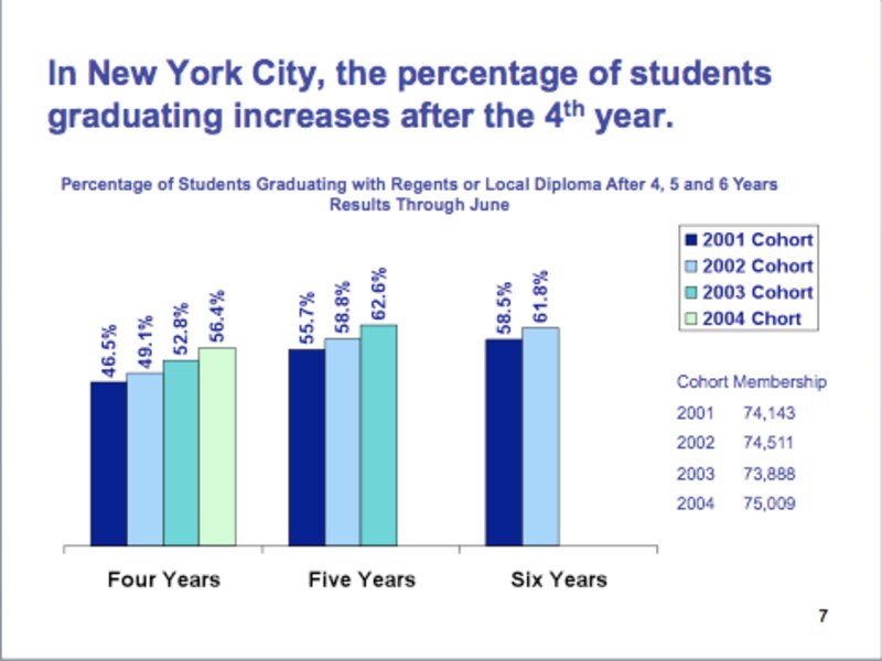 The state Education Department has released graduation rate data on its website; find all the Power Points and spreadsheets here. The New York City rate jumped to 56% from 53% last year. We’ll have a more complete report later in the day, including coverage of Mayor Bloomberg’s take on the numbers.
