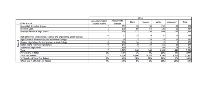 The NAACP Legal Defense Fund also filed a civil rights complaint about the specialized high school admissions process in 2012. Lawyer Monique Lin-Luse, special counsel to the education group at the Legal Defense Fund, said the U.S. Department of Education Office of Civil Rights is still investigating that claim.