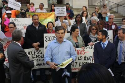 Meanwhile, in an illustration of how divisive charter schools remain in the city, and how divisive Success Academy is in particular, parents and City Councilmembers stood outside the Department of Education headquarters on Wednesday to protest SUNY’s approvals. There is too little oversight of how charter schools spend their money, they said, and traditional public schools that are co-located with charter schools remain underfunded, with arts programs cut, occupational therapy sessions held in hallways, and science labs scaled down. They also pointed to enrollment data from SUNY showing that 13 existing Success Academy schools were under-enrolled last October, including three by more than 27 percent. (The Brooklyn parents group, WAGPOPS, compared charter enrollment targets obtained from SUNY via a FOIA request with enrollment figures from education department space-sharing documents.)