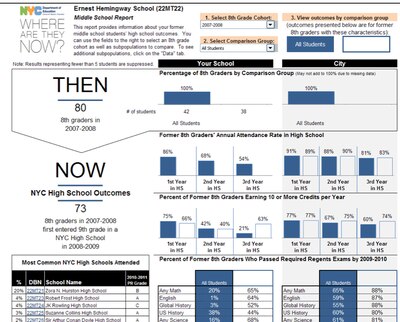 The city will continue to track and provide data used to compile the reports, spokeswoman Devora Kaye said. Some is already available in the school quality guides and snapshots, including what kinds of colleges former students most often attend and what percentage are still enrolled six and 18 months after they graduate high school.