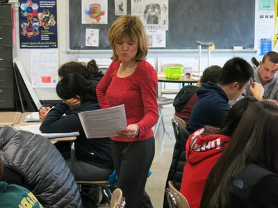 After class one recent afternoon at New Dorp High School on Staten Island, health and science teacher Theresa Dunlap Kutza was comically busy.