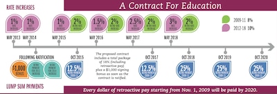Current members will also see salary rate increases of between 1 and 3 percent yearly from 2013 to 2018, and those who worked between 2009 and 2011 will see additional, 2 percent retroactive salary rate increases each year from 2015 to 2018.