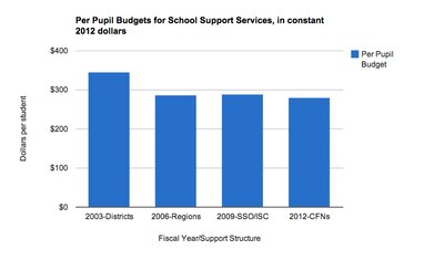 Schools rely on support structures for crucial functions, like helping them select technology and curriculum vendors and to improve instruction, and the networks were the topic of much debate among principals at the end of Bloomberg’s tenure. Total spending on school support in 2011-12 reached $293.1 million.