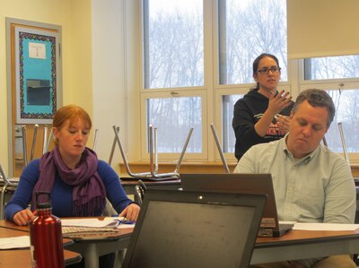 After the teachers wrote down their thoughts that afternoon, they shared them aloud while Fazio transcribed their comments in a document for Varuzza to see when she returned.