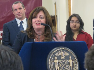 “I think the notion of a group of bureaucrats 150 miles away trying to determine the fate of our children sounds like a formula for disaster,” de Blasio said at Richmond Hill High School, one of 94 schools in the Renewal program. “We are illustrating to you today just how urgently we are applying that plan.”
