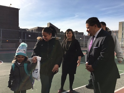 8:45 a.m. Carranza is at Concourse Village Elementary School now. Located in District 7 in the Bronx, one of the most struggling districts in the city, the school it has won accolades for making both academic gains and addressing students’ social and emotional needs, a de Blasio administration priority. According to Insideschools, graduates are increasingly sought by area middle schools — including M.S. 223, the school that Carranza’s predecessor, Carmen Fariña, visited on her first day as chancellor.