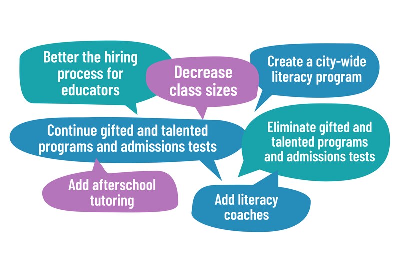 Some common themes emerged, including calls for decreasing class size, finding an avenue for remote learning to continue, adding literacy coaches, and providing after-school tutoring. Many readers called for the continuation for gifted and talented programs as well as the Specialized High School Admissions Test; many called for the elimination of both. Other concerns: insufficient support for students with disabilities, and a lack of teacher diversity.