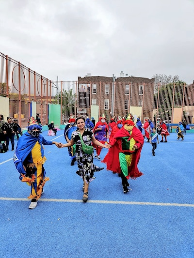 Her Mondays focus on community resources, providing information about food pantries or rent relief. Tuesdays touch on self-care: A recent workshop with New York University’s ParentCorps discussed the importance of helping kids hold onto their roots after coming to a new country. On Fridays, she leads “community walks” to sites such as the large manufacturing and shopping complex at Industry City or the office of their local City Council member. Weekends are for coat and food drives as well as “family fun” activities.
