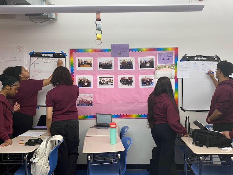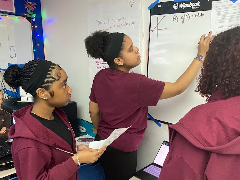 All 25 students in Sharon Collins’ Advanced Placement Calculus AB class focused intently on the problem she posted on the whiteboard at the front of the class, trying to figure out the rate of change for sales of a video game a few months after it was released.