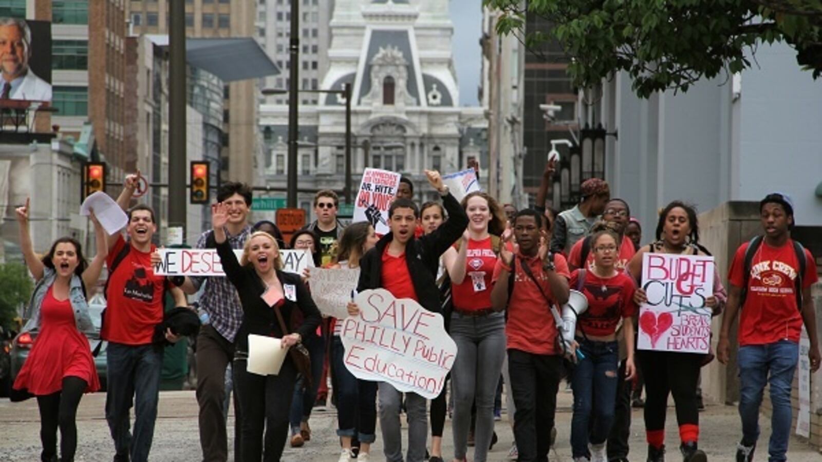 A group of roughly 250 students marched to the District’s headquarters at 440 N. Broad St., where they held their own sort of musical on Tuesday afternoon to protest what some have called next year’s "doomsday budget."