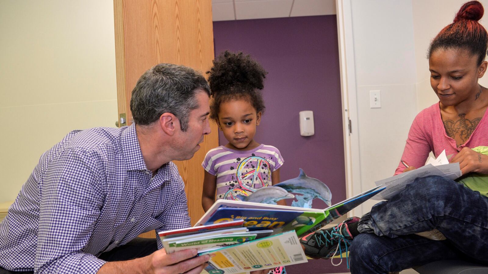 Medical professionals like Taylor have become involved in promoting with parents the importance of reading to children, talking with them, and listening to them. Through the Reach out and Read program, Taylor makes sure that families have reading materials and learns what he can about the child’s home environment.