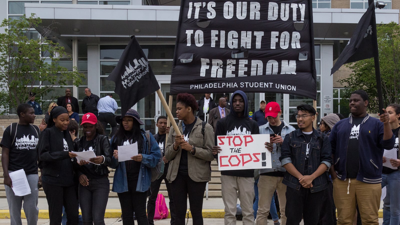 Jahyad Thomas-Thornton, a member of Philadelphia Student Union, stood on the steps of District headquarters on a sunny afternoon in May to lead a chant before a crowd of about 30 people.