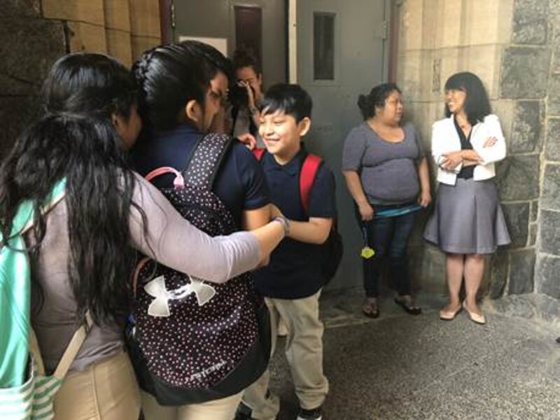 “Today began with a moving reminder that our schools serve everyone,” Gym said in a statement. “This morning I accompanied the four brave children of Carmela Hernandez as they left behind their mother and headed to their respective schools to get the education they are entitled to.