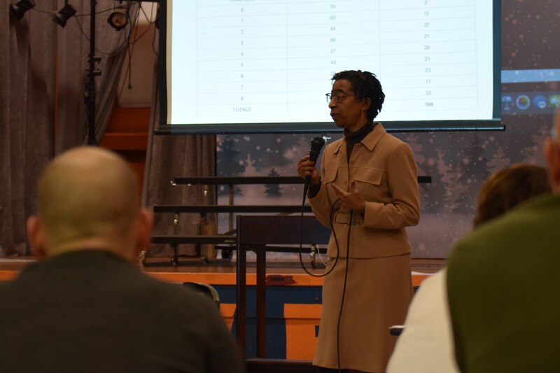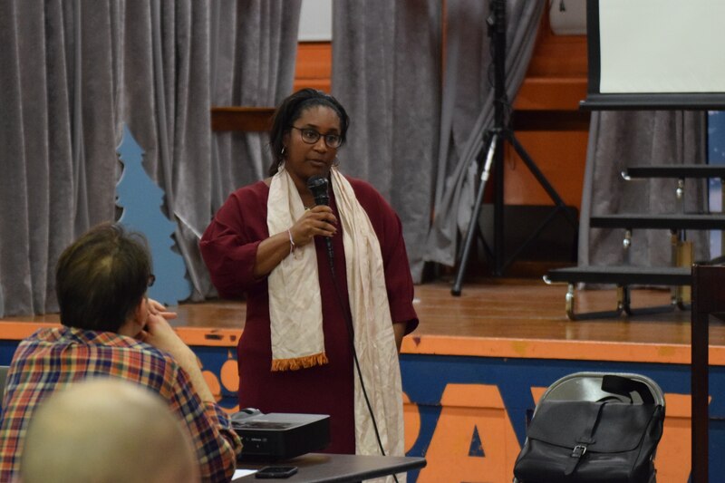 District Chief Operating Officer Danielle Floyd answers questions from parents at a meeting at Andrew Jackson Elementary School. (Photo: Greg Windle)