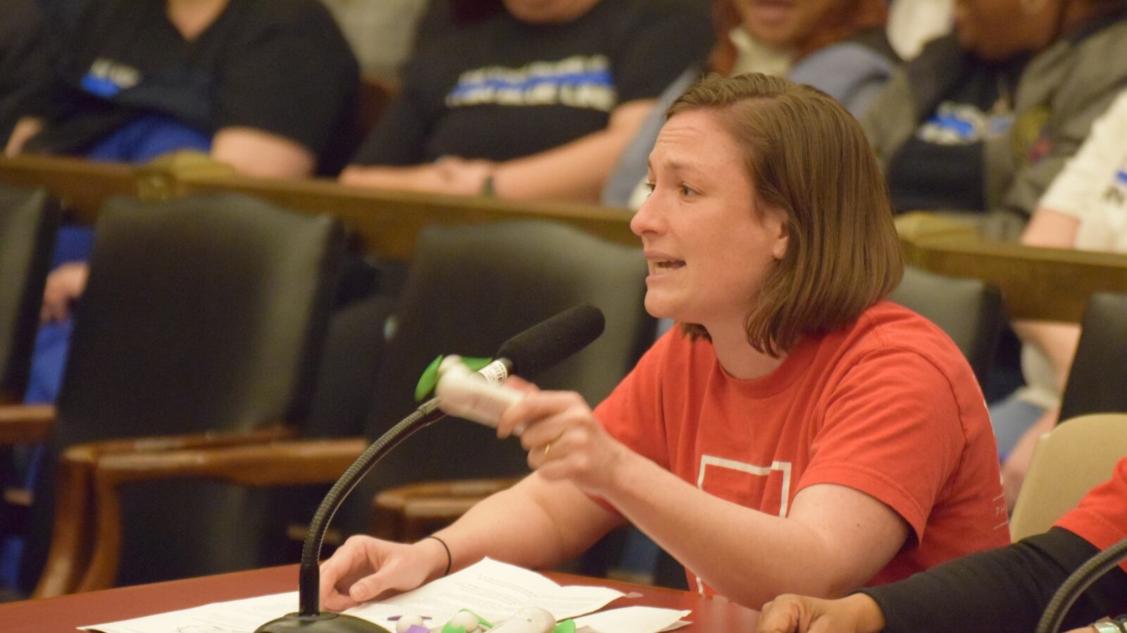 “We would like to invite you to spend a day in one of our classrooms this spring,” Melville told Council in her testimony. “And since we know that you are used to offices that have air conditioning, we are providing you with these necklace fans so that you’ll be ready to join us in one of our many, many classrooms that do not have air conditioning.”
