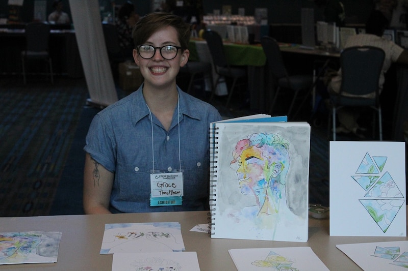 Grace Schliesman, a queer artist and educator from Minneapolis, heard about the conference on Instagram and came to share their art.