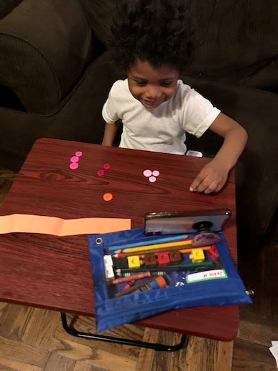 Millhouse said it took Jaden a few weeks to learn to sit still and pay attention during the 30-minute remote classes. By imposing a routine that mirrored the real classroom, it became easier. “We had to plan it. We had to set it up like they were in school,” he said.
