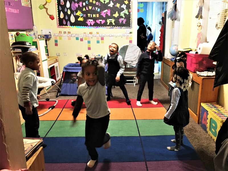 They sat in a circle on the carpeted floor in a dining room repurposed as a classroom. Children’s books, alphabet posters and other educational materials filled every corner. One by one, the children stood and made their way around the circle, each introducing themselves by name to each of the others and asking how they wanted to be greeted. “Good morning, my name is Naleyah, would you like a handshake or a pat on the back?” After Naleyah, who is four years old, the others took a turn: Sarah, 5; Kamari, 3; Aava, 4; Nadir, 4; Kennedy, 4, and several others.