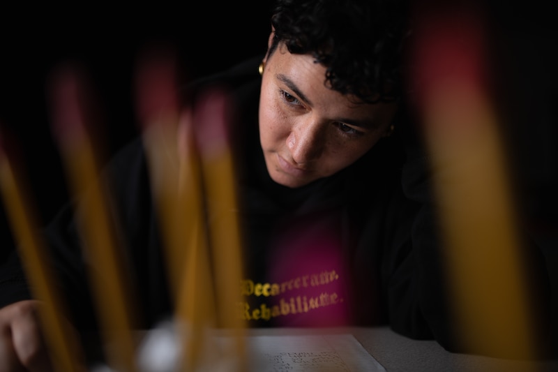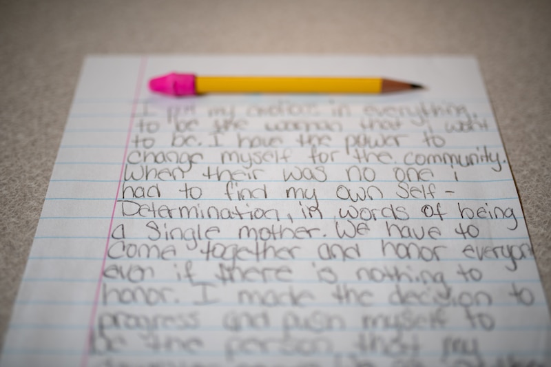 Teacher Selina Carrera, who won a Lindback Award last year, said what’s most important for the students is creating a social-emotional space for them to process their circumstances and also believe that they can be successful going back to school or have a career on the outside. Counseling theory is included in her class where she discusses life skills and allows students to express themselves creatively.