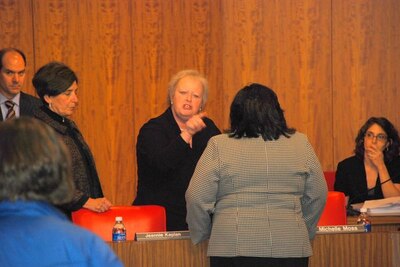 “I worked very hard to get Andrea elected … and I cannot imagine someone going behind my back and doing what she did today,” she told the standing-room-only audience before leaving.