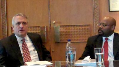 Gov. Bill Ritter and higher education director Rico Munn spokes to reporters about the higher education strategic plan on Feb. 25, 2010.