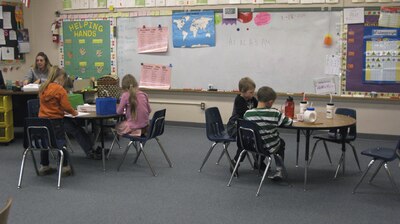 Down the hall, elementary teacher Megan Donnellon has figured out how to tend to the needs of youngsters ranging in age from 5 to 10.