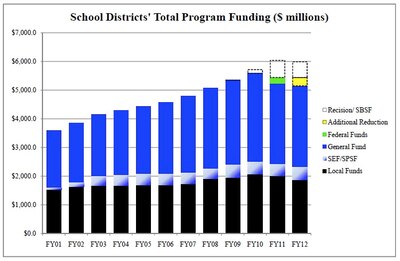 Chart shows components of school funding over the last decade. Click to enlarge; note legend on right