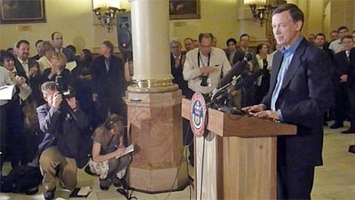 A somber Gov. John Hickenlooper announced he'll call a special session of the legislature to consider civil unions. (Ron Coleman)